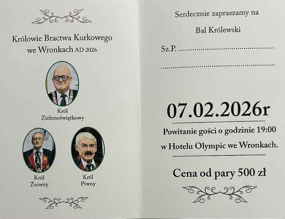 Zapowiedź BALU KRÓLEWSKIEGO - 07.02.2026r. w Bractwie Kurkowym we Wronkach |